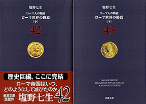 昨年(2013年)の年末にようやく、塩野七生さんの『ローマ人の物語』を文庫本(全43巻)で読了しました。彼女のことは、以前から注目しており2、3冊は読んだと思いますが、まさかこの大冊を読もうか、なんてこと考えたこともありませんでした。読み出すきっかけは、1998年にアルジェリアへ行ったときのことでした。行くまでは、アルジェリアとカルタゴとの結びつきなど、まったく知らず、乗り継ぎの関係で隣国のチュニスに降り立ったとき、はじめてそこがかつてのカルタゴだ、ということを知りました。白壁に、俗にエジプト・ブルーと称される青色で扉などの建具を塗られた独特な街並み、それにもましてつよい地中海ブルーの空の色、これからテロの国アルジェリアへ入るのだ、という不安な気持ちを一瞬とはいえ、忘れさせてくれました。アルジェに入って間もなくのこと、「これを読むといいですよ」と大使が下さった2冊の分厚い本の1冊が『ローマ人の物語?ハンニバル戦記』でした。「ハンニバル戦記」、説明するまでもなく、カルタゴのハンニバルが象群とともにアルプスを越えてローマへ攻め入ったというポエニ戦役の物語です。じつに面白かったですね。夜間、塀の外で「ドーン!」という爆発音が毎晩のように聞こえてくる中で、その不安な気持ちを抑える意味でも、夢中になって読みました。