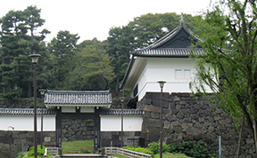 北側洋式庭園はTVドラマなどでよく使われますが、一般的にはあまり知られておりません。緑豊かで、閑静な庭園です。徳川家の代表的な譜代大名だった井伊家上屋敷跡といっても、庭内には江戸の名水の一つと言われた「桜の井」の他に、それをしのぶよすがはありません。ただ、かつてあったであろう表門である赤門を出て、右手の坂をゆっくりと内堀通りまで下る道すがらの左手に、手に取るように見える白壁の桜田門、いつ見ても様になる景色です。桜田門は、外側の高麗門、枡形に組まれた内側の渡櫓(わたりやぐら)門の二門から構成されていて、内曲輪の11ある門のうち、田安・清水門とともに国の重要文化財に指定されています。この門へも、あまり観光客は来ず、静かで、それが理由でわたしの大好きな門となっています。高麗門をくぐり、右手に折れ、導かれるかのように渡櫓門をくぐって皇居外苑(旧西の丸東下大名小路)に入りますと、人の少ないときなど、門外の喧騒を忘れさせてくれます。広々とした苑内のベンチにでも腰をかけ、北の方向を望みますと、不思議なことに、今は消えてしまった往時の大名小路が頭の中に描かれてくるのです。この小路は他とはことなり、老中・若年寄といった幕府の要人となる大名家のための小路ですから、屋敷の大きさはともかく、大名小路内のオープンスペースが広くとられ、伸びやかな縄張りとなっています。板倉周防守、奥平下総守、脇坂淡路守、田沼玄蕃頭等など、時代劇のドラマや読み物などでよく見かける大名の屋敷が並んでいたのです。