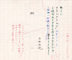 いまでこそ毎月のようにウエブサイトに文章を書くぐらいですから、書くことは決して嫌いではないのですが、じつは高校生の頃までは、文章を書くことが大の苦手でした。文集などに自分の文章が載ったことなどありませんし、第一、投稿したことすらありません。それでも、作文に関してたった一度だけ、忘れられない思い出があります。中学2年のとき提出した作文に対して、「すばらしい!」と、大きく朱記されて返却されたのです。学制が新制に変わってまだ日が浅く、教員不足のため校長先生が代理で国語を教えてくれていた時のことです。そんなことは初めての経験でしたから、あまりの嬉しさに興奮したことを鮮明に覚えています。教科書に載っていた、何か絵に関する文章に対して感想文を書かされたのですが、自分が評論家にでもなった気分で大上段に構え、滔々(とうとう)と論陣をはった(?)のです。むろん幼稚なことを書き連ねたのでしょうが、あいにく手元には何も残っておらず、かんじんな内容のほうは、まったく覚えていないのです。いま思えば、たいへん残念な気がしています。もっともこのことが、わたしが作文に目覚めるきっかけになったというわけではありません。