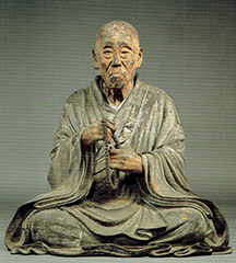 二躰の座像にはお目にかかれましたが、最も肝心な東大寺にある座像に接する機会はなかなか得られませんでした。機会がめぐってきたのは、2012年に奈良国立博物館で開催された特別展『頼朝と重源―東大寺再興を支えた鎌倉と奈良の絆』でした。学生時代に重源に思いを寄せてから、まさに半世紀以上も待って、ようやく実現したのです。重源は在世中に自らの肖像を彫像としてつくらせていましたが、東大寺の座像は最晩年のお姿を写したもので、その出来栄えはもっとも実像に近いとされています。わたしはようやく重源上人にお会いでき、感無量でした。この時のことを、わたしは自分のニュースレター2012年9月号に次のように書いています。お会いしてすぐの印象なので、ここに引用します。