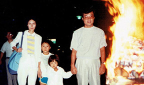 箱根から立ち寄った小川さん一家 吉田の火祭りに岡野さんを招いた経緯はまったく記憶がありません。「よかったらドライブがてら吉田の火祭りでも見に来ないか」ていどのことだったと思います。そのご間もなく、わたしは子会社へ移籍するようになったため、しばらくは社の人を招くということありませんでしたが、平成3年の夏に同僚の小川さん一家を招きました。わたしが神戸の病院建設のために出向していた間、本社側でサポートをしてくれたのが彼であり、病院見学ツアーで一緒にアメリカを旅行した仲間でもあったので声をかけたのです。岡野さん、小川さんとも奥さまがたいへん喜んでくれましたが、会社関係の方に声をおかけしたのは、いずれも若い仲間か、親しくしていた同世代の友人ぐらいで、先輩とか上司にあたる方には声をかけないようにしていました。唯一の例外は、妻が結婚前からよく知っており、わたしも尊敬していた先輩Oさんで、平成3年のGWに山荘をベースに御坂峠の中腹まで車で行き、そこから三つ峠に登るお誘いをしたのです。たいへん喜んで下さり、「まらうと」にこんな文章を書いてくれています。「思いもかけないお招きに悪乗りして(中略)、三つ峠登山、頂上でいただいた三つのオニギリの味とホノカナぬくもり、三つ葉つつじのあでやかさ、この三日間は新しい想い出となるでしょう」。機智に富んだ文章で、印象に残っております。