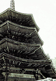 安楽寺三重塔の全景 少し前の号で書きましたが、日本建築史の研究の道に進みたいという思いを断念し、卒業と同時にエンジニアリング会社(プラント建設)へ就職することにしました。しかしその思い断ちがたく、社会人になる前に可能な限り古建築に別れをしてこうと、卒論・卒業制作のまとめで忙しい中、都内、そして東京近郊の遺構を見て回りました。入社式の直前には、日帰りで信州・別所温泉近郊に点在する三重塔を見てきました。今月は、その旅の1年半後にまとめた紀行文を載せることでお許し願います。たぶん、当時休刊していた同人誌『棕櫚』が再開されたら寄稿しようか、とでも考えてまとめたのだと思います。可能な限り原文の再現を念頭におきましたが、文中にむずかしい専門用語が多用されている箇所については部分的に書き直したこと、お断わりしておきます。