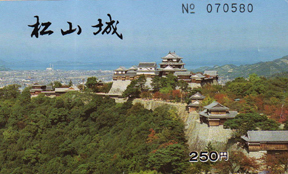 伊予松山城入場券 さて、「現存12天守」のことです。江戸時代にあった170ほどの天守がほとんど壊滅状態になった中で、それでも現在、12もの天守が残っています。北から列挙しますと、弘前城、丸岡城(福井県)、松本城、犬山城、彦根城、姫路城、備中松山城(岡山県)、松江城、丸亀城(香川県)、伊予松山城、宇和島城(愛媛県)、高知城です。これはもう奇跡といってもよいほどで、別格的に「現存12天守」と称され、うち姫路・松本・犬山・彦根の4天守は国宝に指定され(姫路城は世界遺産にもなっています)、他の8天守もすべて国の重要文化財になっております。わたしがはじめて訪れた城は、父の影響を受けたせいか松本城で、学生のころ上高地から下山した時のことでした。社会人になってから、国内現場勤務の関係で伊予松山城や松江城と訪れるうちに、12天守だけはぜひ行ってみたいという気持ちがつよくなりました。とはいっても、わたしの国内旅行は仕事にかこつけて行くことが多く、仕事に縁の薄かった東日本の弘前城、丸岡城の二つだけはなかなか機会がなく空しく年月が過ぎていきました。それが、昨年(2012年)秋、青森に行く機会を利用して弘前城を陥落させましたので、最後の丸岡へは自腹を切ってでも、と決めていたところ、4月末に関西へ出かける用ができたついでに福井へ出て、そこからバスで40分ゆられて丸岡城へ行って来ました。最初の松本城訪問から12天守すべてを回るまで、なんと52年も費やしたのです。たいして意味のあることではないのですが、わたしにとっては感激でした。そんなこともあって、現存12天守登閣記念として、小稿をまとめる気になった次第です。以下、12天守について訪れた順に記していきますが、紙数に制限がありますので、城によっては寸評にとどめている点、ご容赦願います。