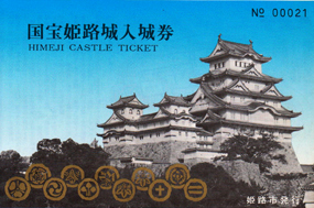 姫路城入場券 姫路城(白鷺城):山陽新幹線から望む姫路の城は、翼を広げた白鷺の姿に譬えられるほどに美しい。山口で現場勤務していた折、いつかは途中下車してでも行ってみたいと思ったものでした。子会社に移籍してすぐに神戸での病院建設のため3年間単身赴任し、その後、コンサルの仕事で姫路の北東に隣接する加西市へ通うことになったため、この城にはずいぶん訪れました。神戸在住中、家族がバラバラに訪ねてくるたびに案内しましたが、いいかげん飽きるどころか、訪れるたびに受ける感銘度が増していったものです。姫路城のすばらしさは、単に天守が美しいということだけではなく、江戸時代の城郭としての総構えが12天守中、もっとも規模が大きくしかも完成度が高いことにあります。いわば、往時の姿がそのまま残されていると言ってもよいほどで、その点では他の城を圧倒しており、世界でも有数な城だともいえるでしょう。日本で最初に世界文化遺産に登録されたのは当然だと申せます。姫路は先の戦時中の空襲で焼き尽くされ、城も三分の二が焼失したそうです。幸いなことに空襲以前に施された遮蔽ネットにより天守は戦災を免れましたが、これは天佑としか言いようがありません。3つの小天守とそれらを結ぶ渡櫓によって囲まれた天守、西の丸・長局(ながつぼね)と天守とを結ぶ途中の「はの門」に至る狭間(時代劇の撮影などでよく出てきます)、そして15を数える城門などなど、日本の城のすばらしさを随所で味わうことができます。唯一残念なのは、城中に存在していた御殿が明治維新での取り壊し、あるいは空襲による焼失で存在していないこと、そして欲をいうなら、往時には現JR姫路駅まであったという外曲輪を見ることができないことだと言えましょうか。
