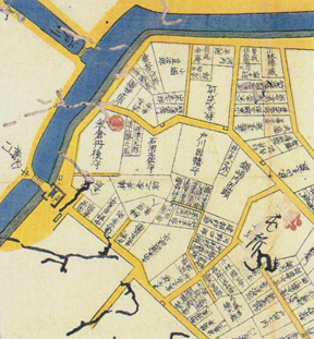 江戸古図 身分制度でがちがちに縛られていた江戸時代、旗本が大名に登用されることはめずらしく、その例は少なかったことと思います。現代の国家公務員上級職でも、いわゆるキャリア採用があるように、江戸の昔でも、幕府の官僚(主として旗本と一部の御家人)が出世するためには並大抵の努力ではなれず、出世コースに乗るためには一定のキャリアを経験する必要があったようです。まずは幕府の昌平坂学問所で数年に一度行われる「学問吟味」で抜群の成績を残すことが肝要で、その上で、幕府の武官である数多くの番方のうち、「両番方」と称された小姓組番、書院番を経験する(これを「番入り」と称したそうです)ことが必要だったようです。この双方共、将軍にもっとも近侍するわけですから、将軍の目にとまる機会が多くなるわけです。番入りのつぎに目付に登用されれば、その先の出世は保証されることになります。いささか蛇足になるかもしれませんが、目付は職業柄、幕閣の弱みをつかむことができますので、「諸刃の剣」的な面がありますが、おのれの器量を認めさせるいい機会になるわけです。目付のあとは、然るべきなんらかの奉行職に就き、うまくいけば旗本最高の役職である大目付になるか、わるくても格の高い留守居役になってめでたく引退、というのが旗本出世コースの頂点で、そこから、さらに大名に引き上げられることはほとんどないわけです。米倉昌尹同様に、異例の出世をとげた旗本に、講談やTVドラマでおなじみの大岡忠相がいます。忠相の場合は、はじめから2000石近い高禄の旗本でしたが無役が長く、27歳のときにようやく書院番になり、ついで徒頭・使番を経て33歳のときに目付になっています。その後、山田奉行、普請奉行を経て42歳で町奉行となって越前守を受領し、7代将軍吉宗に重用され、名奉行として長くその職にあったことはご存じの通りです。最後は神社奉行となり、そして10000石に加増されて三河・西大平藩(現岡崎市)を立藩しています。こうして米倉丹後、大岡越前の二人を比較してみますと、時代が異なり、仕えた将軍も違うわけで当然比較にはなりませんが、スタートがわずか600石の下級旗本から出発したこと、最後は若年寄にまで上りつめたという点では、名前こそ大岡越前ほど残せませんでしたが、幕府の能吏として米倉丹後守昌尹はきわだっていたと思われます。なお、米倉家が皆川から武州金沢へ転封したのは、享保7年(1722年)、昌尹から3代あとの忠仰(ただすけ)のときで、金沢藩主(維新後、前田家の金沢と紛らわしいということで六浦藩と改称)は初代忠仰から8代続いて明治維新を迎えています。
