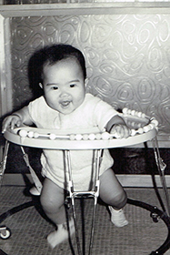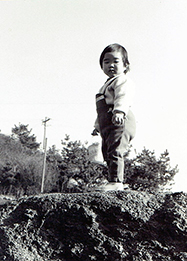 歩行器を使って歩く長女 四国からもどったのは、その年の11月末。しかし、自宅で正月を過ごせただけで、1月に四国対岸の山口県小野田へ赴任し、家内と長女も追っかけるように、7月はじめに宇部市厚南の宿舎に落ち着きました。宇部の宿舎といっても隣の小野田との境界の山中、ボタ山がそのまま放置された炭鉱跡の荒れ地で、人家は周辺に数軒あるだけ。買い物も山を下って、バスで市中まで出なければならないのです。とくにひどかったのは、家の中にまでダンゴムシやムカデが侵入し、あろうことか一度なんか、数十センチほどの蛇までが入ってくる有様でした。さすがにこれには参りましたが、年が明けて小野田のアパートに移転できるまでの約7か月間、家内はよくがまんしてくれたな、の思いをつよくしています。