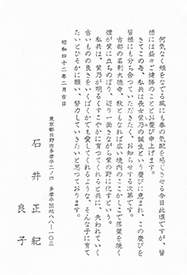 長女誕生時の案内葉書 長女の誕生は1967年(昭和42年)のことでした。7年前に京都・洛北大徳寺境内で考えた通り、名前は紫野(しの)とつけました。ただし、「野」という漢字は名前としてふさわしくないのでは、という家人の意見で「乃」の字を採用し、紫乃としました。縁起もかつぎ、本を参考に名前の字数もチェックしました。成人した当人が、自分の名前をどう考えているのか聞いたことはありませんが、わたしはいい名前だと自負しております。名前に紫野(乃)とつけた長女を、はじめて洛北紫野の大徳寺へ連れて行ったのは1979年2月、滞在していたサウジから一時帰国した際、家族みんなで京都旅行をしたときでした。のちに、病院建設のために神戸に滞在した3年間は、娘たちも成人となっており、家内を含めて家族が何度か関西へ訪ねてきたときでもありました。大学卒業を目前にした長女が神戸を訪ねてきたとき、京都へも行きましたが、あいにく大徳寺へは行けませんでした。その代わりと言っては変ですが、下の娘、家内とは行っております。下の娘は、長女が来神した同じ年の晩秋、広島方面への旅行帰りに神戸へ立寄りましたので、その機会に神戸から京都へ日帰りしました。大徳寺では孤蓬庵と真珠庵とが特別拝観をしており、境内から離れた孤蓬庵で茶席「忘筌」を拝観し、境内へもどり本坊北側の真珠庵で、大徳寺と茶道とをはじめて結びつけた珠光の墓を参拝し、すぐとなりの大仙院へ寄ったのです。それから10年あまり経った2002年の新緑の候、家内と、奈良の国立博文館へ重源上人像を拝観しに行った折に、京都に一泊して詣でてきました。このときは、興臨院、芳春院で特別拝観ができ、その他に龍源院、大仙院を拝観してきました。大仙院へはじめて行ったときから44年の歳月が経っていたことになります。当時の大仙院は早朝だったこともあって、静寂そのものであり、人影もまばらでした。それがどうでしょう、玄関を入ってすぐのところに売店が大きなスペースを取り、わかい寺ガールズがたむろし、本堂の広縁は人ひとで埋まっていました。たまたまお体が空いていたのか、御住職自らが説法、そして庭園の説明をし、ときには売店の売り子までしておりました。正直なところ、わたしは唖然とする思いでした。元来大徳寺は、京都五山の中でも他派とは趣を異にし、厳粛なる禅の道を教える道場として観光寺ずれするのを嫌っている寺のはずです。ために、大仙院をはじめ4塔頭を除き、他の20あまりの塔頭は「拝観謝絶」(特別公開時を除き)をつらぬいているわけです。そのはずなのに、大仙院の迎合ぶりにびっくりしたわけです。しかし、こうとも考えられます。先に記したように、大徳寺は清濁を併せ含むだけの力のある大寺です。境内すべてが「拝観謝絶」をしていたのでは、せっかくの「宝」も持ちぐされ、いずれは社会から取り残されてしまうかもしれません。そのためには、公開されている塔頭だけでも積極的に社会に迎合し、いわば観光寺に徹することで、多くの塔頭を含む大徳寺そのものを、一大禅林として社会の中で忘れさせずに生き残っていくすべなのではないか。大仙院尾関宗園和尚はそう考えておられるにちがいない、わたしにはそのように思えるのです。