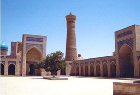 もっとも、外国では1時間ていどの遅れはたいしたことではなく、じつは、それからがたいへんだったのです。ウズベキスタンのローカル空港ですから、先進国の空港のようにフィンガーデッキから直接ターミナルビルへというような近代化された施設はありません。しかしそれでも、バスなり、あるいは徒歩にせよ、乗客はいったんはターミナルへ入るのが通常の筈なのですが、よくはわからないままに搭乗機からそのまま空港の外まで歩かされたのです。そこには、通訳の知人である医者のウマル・シェロフ博士が待っていてくれました。わざわざ空港へ迎えに来られたということで、車でも用意されていると思ったのですが、それらしき車の姿はなく、挨拶もそこそこに市内に向かって歩き始めました。歩きがてらの話でわかったことは、その日は、カリモフ大統領が市内に滞在中だったために市内への車の乗り入れが一切禁止され、市内はいわば戒厳令が布かれたような厳しい取締りになっていたのだそうです。そういえば、空港でも、空港からの道すがらにも、一定間隔で警官が立ち、時には武器を手にした兵士の姿も見受けられました。ブハラの観光はそのような状況下で行なったわけです。いま考えてみますと、通訳はむろん事態を把握していたに違いありません。しかし、それを事前に話して、わたしが嫌気を出したら、と敢えて隠していたのでしょう。