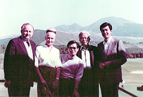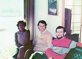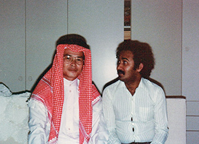 自宅でユセフ・サイトさんと並んで エクアドルから帰国したのは1977年2月のことでした。この年はたいへん忙しく、もどってすぐにパリに出張、パリからもどったかと思えば、またパリ経由でサウジアラビア・ジェッダへ行ってくれという有様。秋になってようやく落ち着いた頃、エクアドルの現場でたいへんお世話になったM氏夫妻がアメリカから来社しました。次の年に赴任する予定のジェッダの現場に、氏も同じく行かれるということで、会社の上司に付き添って雲仙へ1泊旅行したことはすでに先月号でご紹介した通りです(2018年7月号 『日本のクラシックホテル』参照)。そのような関係もあって、拙宅にそのM氏夫妻をディナーにお招きしました。10月のはじめのことで、雲仙への旅はそれから10日ほど経ってからのことだったのです。それから2週間ほど後のこと、なんと、M氏の下で働いていたL氏が奥さま同伴で来社したのです。そうなると、立場上やはり招かないわけにいきません。わずか3週間の間にアメリカ人夫妻を2組も招いたことになるのですが、声をかけるだけのわたしは気楽なものですが、ホステス役の家内はさぞかしたいへんな気苦労だったのだと思います。それでも、笑顔を絶やさず得意の手料理で二人のアメリカ夫人を喜ばしたのですから、内心、「おぬしやるな」と感服しきりだったものです。入口からリビングまでの狭い廊下、廊下とリビングとを仕切ったガラス戸、大きな肩を狭めるように入ってきたM氏が、それでも多少は広いリビングの空間にホッとしたように、現場ではついぞ見せなかった愛嬌に満ちた表情を見せ、片目をつぶったものでした。わたしもホッとした反面、外国人にとっては、これが噂に聞く「ウサギ小屋なのか」、という日本家屋の実態を見られてしまったなと思い、恥ずかしさのあまり招いたことを悔やんだものでした。彼らが拙宅でどのように過ごしたのか、家内の料理がどんなもので、その席に娘たちがいたのかどうか、まるで覚えておりません。とくにはじめてお会いしたL氏夫人がどのような方だったのかは、我が家にとっては一大イベントだったはずなのに、写真の1枚も残さなかったこと、いまにして思えば残念なことでした。
