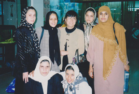女子高校生グループ(ショッピングセンターにて) 20歳になったばかりだという娘をもつ50歳ぐらいの工事監督ブラレスと食事を共にしたとき、わたしが発した何気ない質問に対して、彼は「娘の嫁ぎ先は、家長たる自分が先方の父親と決める」、ときっぱりと断言し、カビールとしての伝統的な掟が厳然としていることを示していました。大方の男性はこれに近い考えなのでしょう。 しかし、カビリーの山を離れ、アルジェのような大都市に職を持って住みついた若者の中には、そんな考えはもう古いと否定する者が出てきているのも事実です。ブラレスとの食事に同席していた同じ会社のダハマニーもそんな若者の一人でした。若者といっても、すでに30代にはなっていましたが、「若い二人が互いに好き合うなら、相手がカビールであろうがなかろうが構わないし、 親だからといって反対すべきではない」、としきりにブラレスをけん制していました。ブラレスのいうように、娘を他民族の男性とは結婚させないが、他部族から嫁をめとることはカビール社会でも許されているようです。そのこと自体、日本人から見ればたいへんな男尊社会と思われるでしょうが、イスラムの世界、とくに中東ではごく当たり前といえるのです。 カビール社会の場合、さらに、同じベルベル人でも部族(アールシュ)にこだわり、かつ、家長が絶対的に力を有するアハムと称する独特な風習が、まだ根強く残っているようなのです。前号で名前を出した警備官サブ・チーフのツバクはカビールで、わたしより少し年若でしたが、滞在中もっとも親しくしていた友人でした。共通の言語がないために会話には不自由しましたが、 ある日の雑談の中で、「じつは、俺の下の娘がカビールの男と一緒になったのだ」、と突然言いだしたのです。それはめでたいじゃないの、と、とっさにはそう思いましたが、会話に加わっていた彼の部下、オーレス山中のビスクラ(ワインの産地で知られている)出身のザミット(たぶんシャウイ族か)が、「へえ、世の中にそんな父親もいるの。 信じられない」、といかにもあきれたように言うのです。まだ独身だったザミットにしてみれば、カビールの男に娘を嫁がせるような危ない思いをするなら、自分にチャンスを与えてくれればよかったのに、と半ば冗談での会話のようでした。この会話、じつはわたしにはよく理解できなかったのですが、要は、こういうことだったようです。父親であるツバクにしてみれば、 ザミットのたたく軽口で済むような話ではなく、「いやぁ、結婚初夜で、娘の処女の証しがあって、ほんとうによかった」と、ほっとしたように語ったのです。もし娘が処女でなかったら、どんな仕置きが待ち受けているのか、父親としては、内心はそのことを恐れていたようです。カビリーの社会では、成人になっても娘の保護者は父親であり、父親がいない場合は男兄弟、そして結婚すれば夫なのです。 もし未婚の女性が妊娠したり、既婚女性が不義・姦通をした場合、保護者は自分の手で彼女たちを始末しなければならない掟が待ち受けているのだそうです。話が少しずれますが、アルジェリアでは、一時テロの嵐が吹き荒れましたが(わたしの最初の訪問時はその最中であり、現場事務所開設中にはだいぶ治まり、アルジェ市内でのテロはほとんどなくなっていました)、 テロ団に連れ去られ、レイプされたあげくに妊娠させられた女性も少なからずおり、彼女たちの悲劇は、単にレイプされたというだけにとどまらず、さらに掟が待っていたことだ、といわれていました。ツバクさんいわく、彼の奥さんは出血したことを示すシーツをご近所さんによく見えるように外へ干したそうです。 (2011年 11月) |