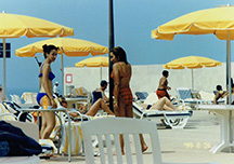 プールサイドにて アルジェの西の海岸沿いにあるシェラトンホテルは、近くに軍の施設があることから、比較的安全だということで何回か訪れた。ホテルのプールはテロの国とは思えないほど平和で、水着の花が咲いていた。もっとも、写真を構えたわたしのそばでは、いかつい警備官が目を光らせてはいたけれど……